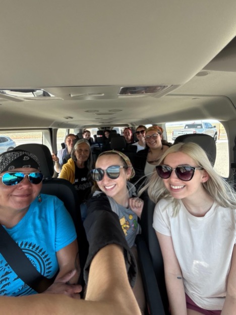 After doing our reading, we headed back up and stopped to look at some of the jewelry that was being sold. We have all found the jewelry and beadwork created by the Navajos to be stunning and fascinating, so we take every opportunity we get to look at it! After finishing our shopping, we loaded back into the van and headed towards the Grand Canyon entrance. All the girls, including Vanessa and Chaunupa road in the van, while the guys rode in the truck with Bryan and Fox.