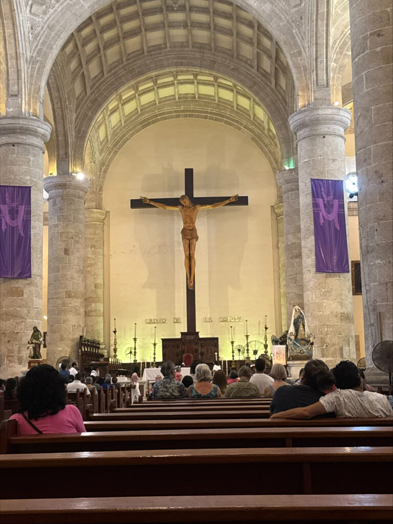 Today was our first full day in Mérida, and some of us got an early wake-up call from the roosters next door. We started our morning with breakfast at the house and then went to Mass at the Cathedral. Following Mass, we spent some time walking around the central area, exploring different shops and admiring local paintings. For lunch, we went to La Chaya Maya then after we continued exploring for a bit longer before heading back to Casa Blanca to relax for the evening. When we got back, a few of us played board games together. Later that evening, we made chicken and rice for dinner at the house. Finally, we ended the day with reflection.