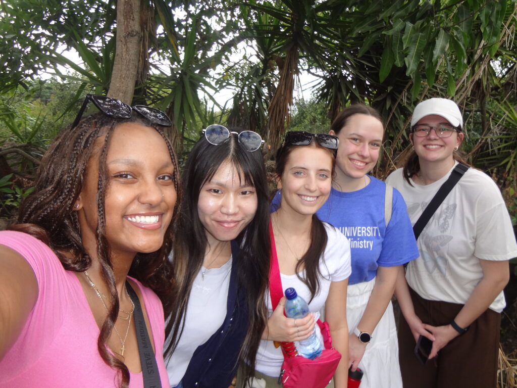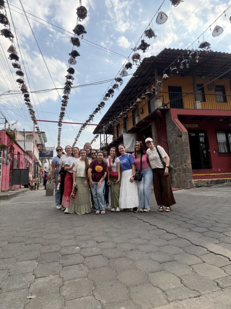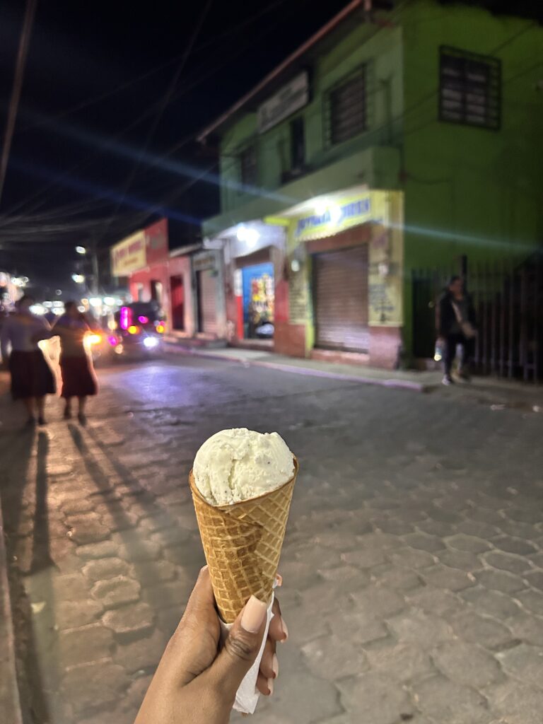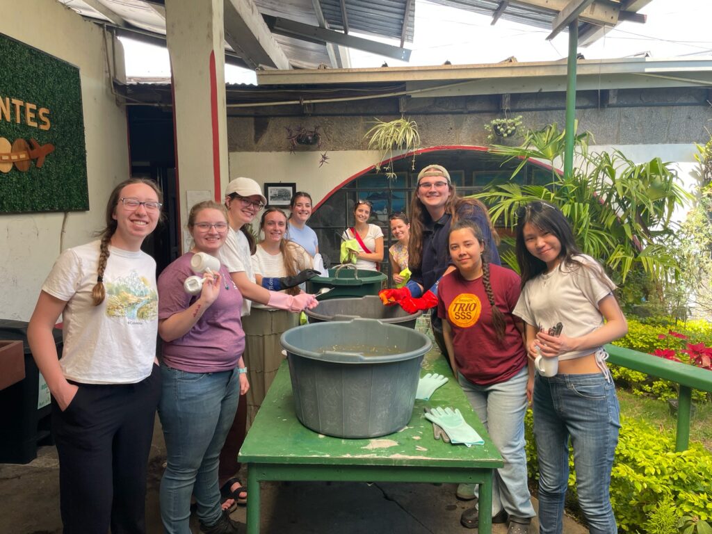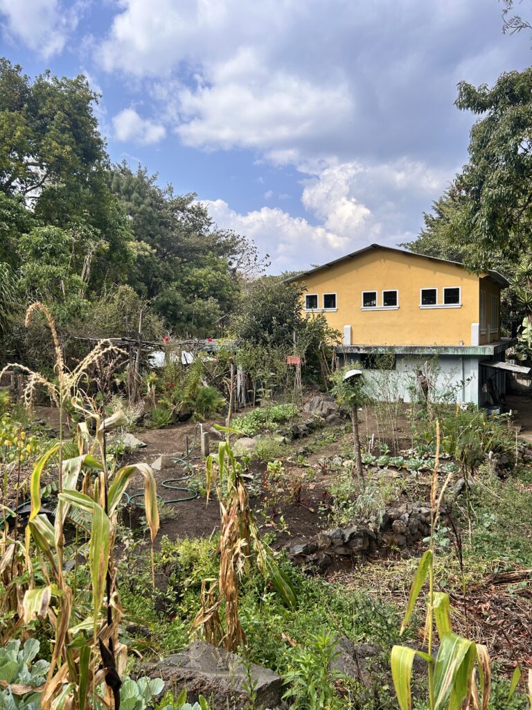 In the afternoon, we embarked on a medicinal plant tour back at the Women’s Center. We learned about dozens of plants and their unique properties. The mission is able to offer these resources to the community for free. It was fascinating to learn how common plants can treat illnesses like diabetes, prostrate issues, UTIs, blood pressure problems, and many more general ailments. We had a little extra time to hike further into the property and sample oranges grown there! We also caught a glimpse of some smoking volcanoes through the trees!