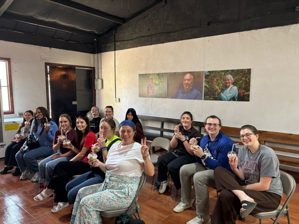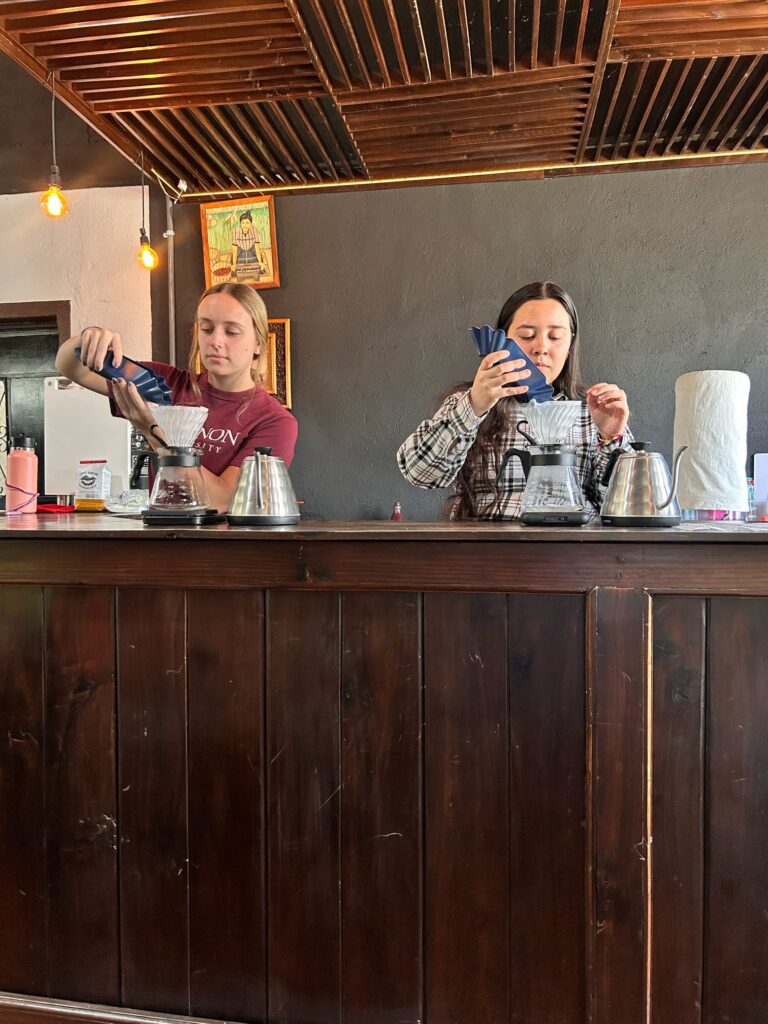 After breakfast, our first activity was the Coffee Presentation at Cafe Juan Ana. They walked us through three methods of making it including a drip method similar to Chem ex and the Japanese Siphon! Each method resulted in a unique flavor that we sampled and at the end we each got a frozen blended mocha! Overall, that was the groups and our favorite.