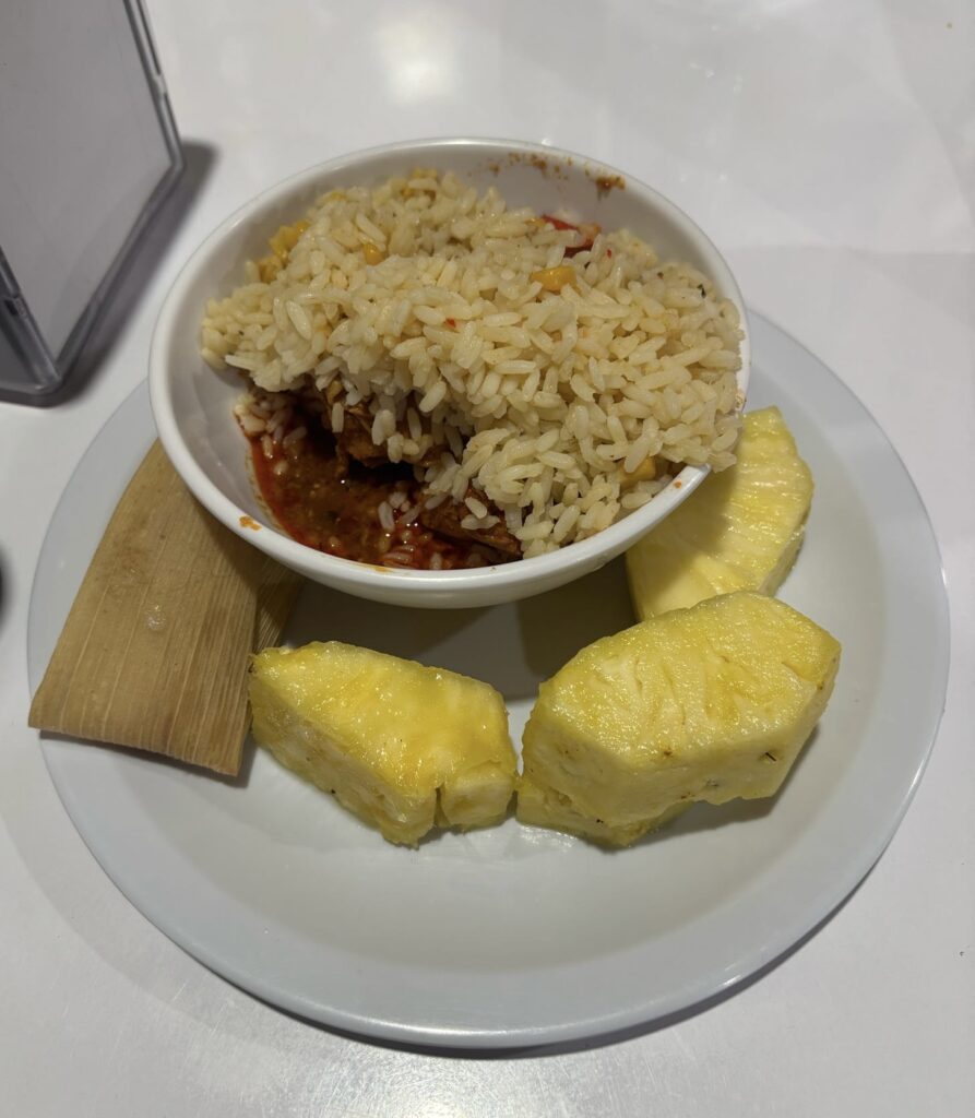 We then had a delicious lunch called pepian (pictured below). This included delicious chicken, a pepper flavored rice and tamales.