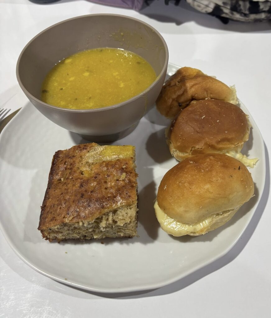 We regrouped for dinner and had amazing sandwiches and soup. Dessert was plantain cake that tasted very similar to banana bread. Muy bien!