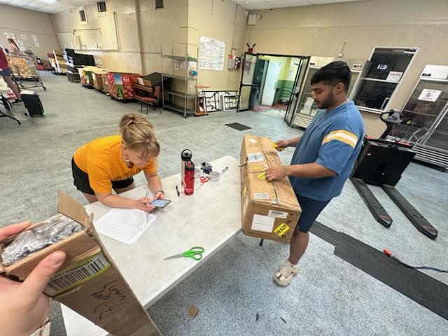 Later, we received another large bin of donated items and returned to our station to continue sorting. After finishing that task, we moved on to preparing bags with straws and lotion. At first I was confused “Straws and lotion?!” but we learned that sometimes large donations come in bulk, so they pair certain items together when distributing supplies.